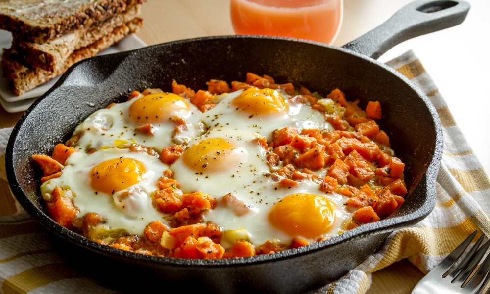 • Poslužiti pečeni batat s jajima, kriškama avokada i hlebom. Pokapati s malo maslinovog ulja i posuti svežim peršunom.