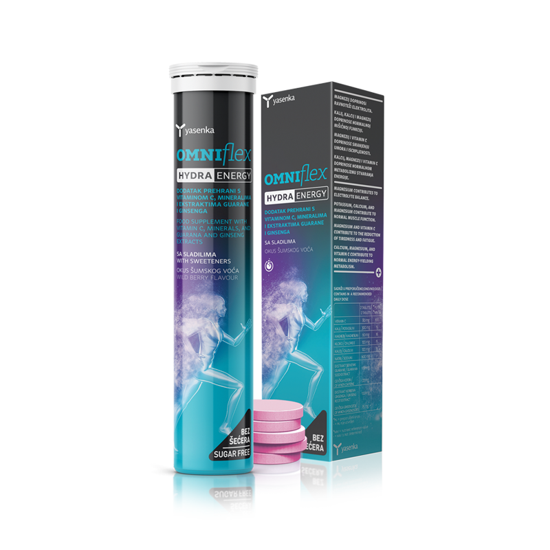 Dodatak ishrani koji vraća telu izgubljene elektrolite i sadrži ekstrakte guarane i ginsenga koji osiguravaju brže stvaranje energije i pridonose boljim sportskim rezultatima. Yasenka Hydra Energy smanjuje umor i iscrpljenost, a preporučuje se i kod nadoknade elektrolita izgubljenih povraćanjem i dijarejom.
